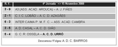 A Associação queria despedir-se de 2008 com uma vitoria perante a equipa do Urro, na primeira parte entrou bem com bons lances ofensivos e boas oportunidades de golo, chegou ao 1-0, logo de seguida num lance de contra-ataque a equipa do Urro chega à igualdade no marcador. A partir daí e com algumas mexidas no cinco da Associação, a equipa pegou no jogo para fazer uma exibição de luxo até ao intervalo, chegando ao fim com um expressivo 4-1 no marcador.